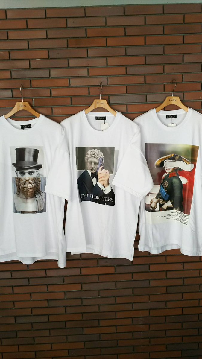 Cuirs キュイー パロディーtシャツ登場 ウィットに富んだパロディープリントが目を惹く特徴的なアイテム ホワイトブラック 3デザイン ハット 英雄 ブロンズ 4800 パロディーtシャツ Tシャツ プリントtシャツ パロディー プリント