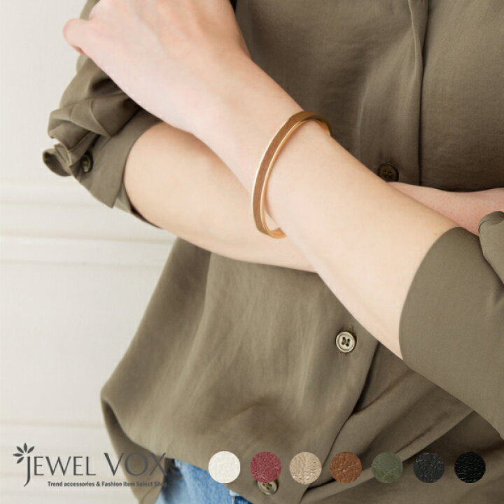 楽天市場 ネコポス送料無料 バングル ブレスレット 金属アレルギー ブレス 革 レザー レザーバングル 本革 細 華奢 アクセサリー ギフト レディース ニッケルフリー 全7色 安心 オリーブ モスグリーン アースカラー ワインカラー Jewelvox ジュエルボックス